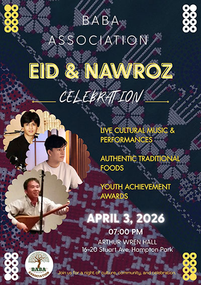 The Baba Association proudly invites you and your family to join us for a vibrant celebration of Eid & Nawroz 2026.